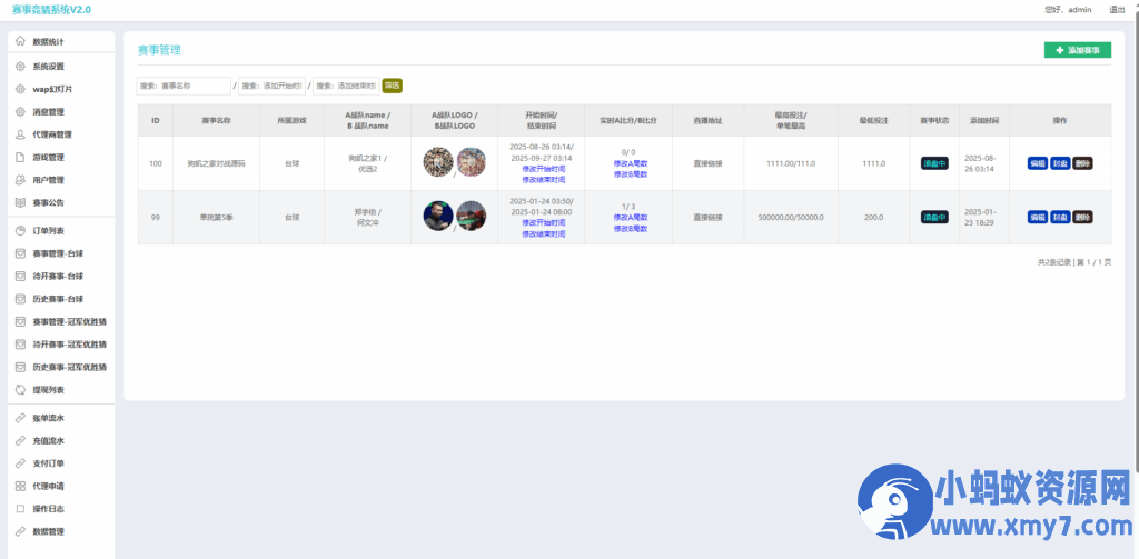 我没时间看了,赛事自定义设置,也有冠军赛事,自定义赔率,
