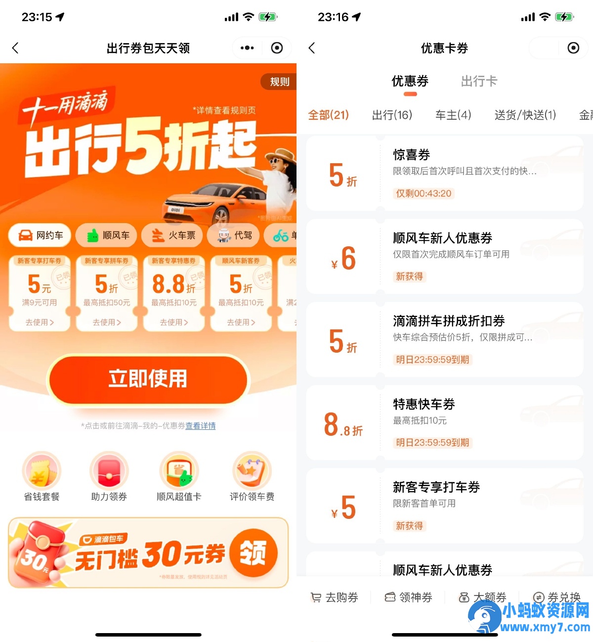 打开活动地址->直接领5折打车券,部分人还有9-5亓打车券