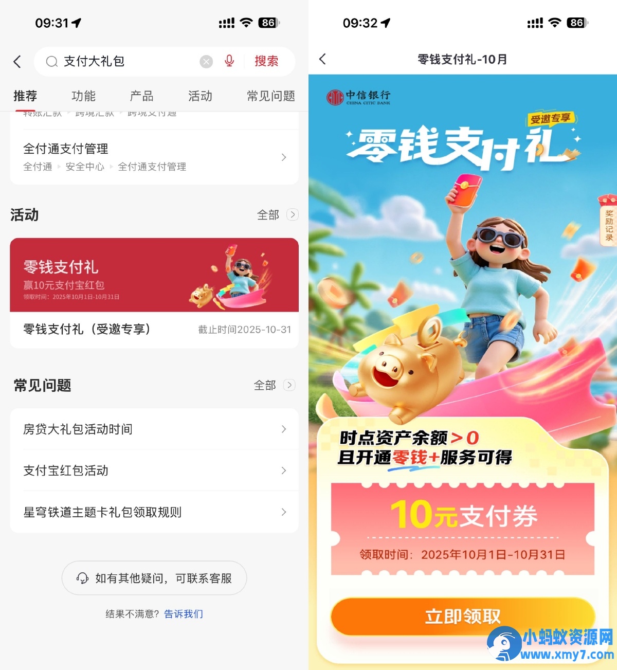 中信银行APP搜索“支付大礼包”->下拉点横幅进入->受邀用户可领10亓支付券